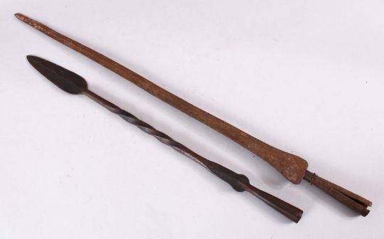 TWO AFRICAN POSSIBLY ZULU SPEARHEADS, 72cm and 54cm.