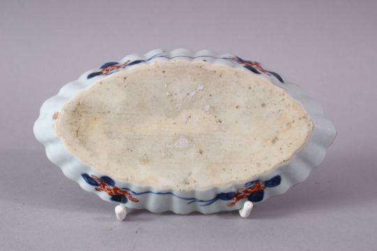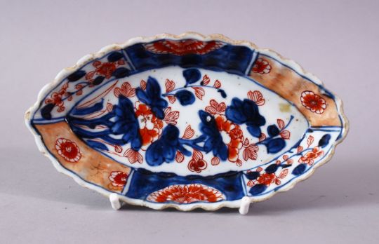 A 19TH CENTURY JAPANESE IMARI DECORATED SPOON TRAY, 15cm long.