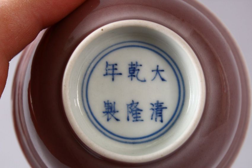 A PAIR OF PINK GROUND TEA BOWLS, six character mark, 9cm diameter.