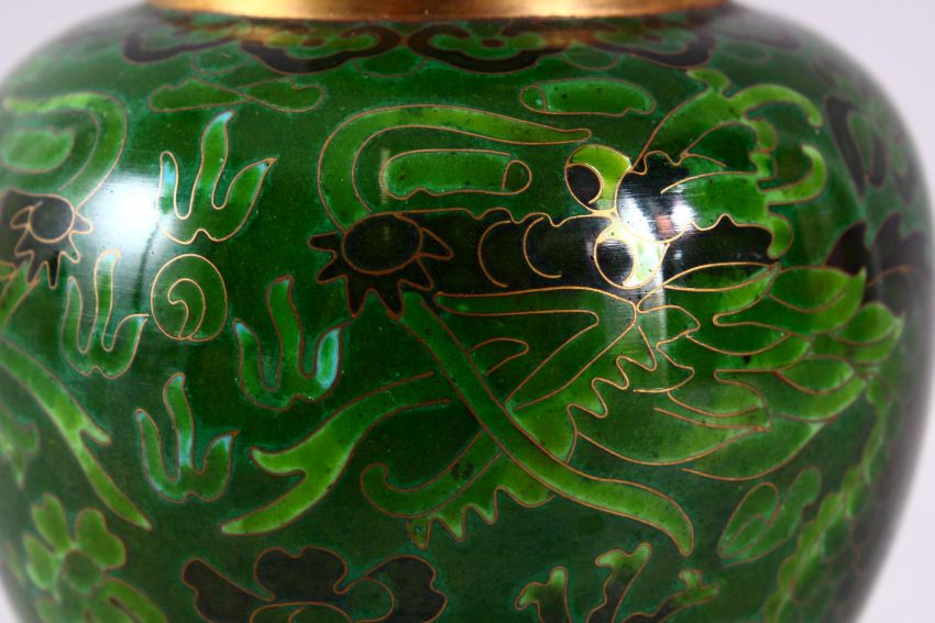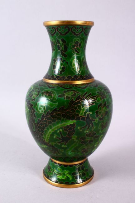 A 20TH CENTURY CHINESE GREEN GROUND DRAGON VASE, pre cultural revolution, depicting a dragons chasing the pearl and surrounding native flora, 21cm high