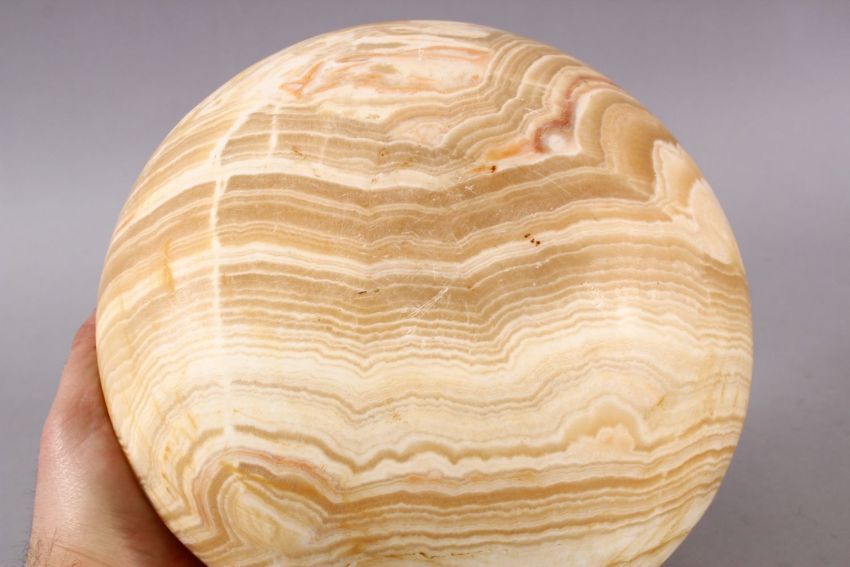A LARGE EGYPTIAN CARVED MARBLE STONE BOWL, 23cm diameter