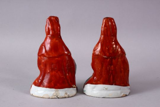 A PAIR OF 19TH CENTURY CHINESE FAMILLE VERTE POTTERY FIGURES OF GUANYIN, 15cm high.