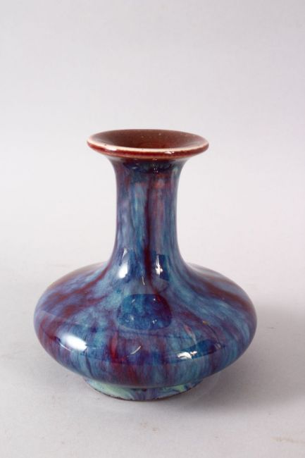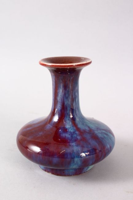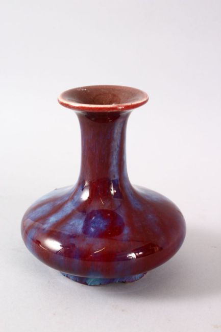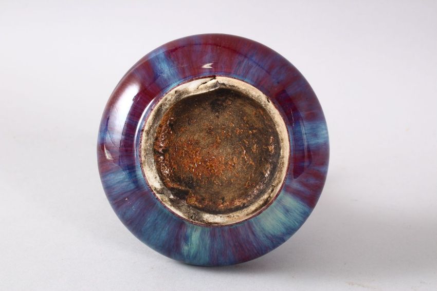 A CHINESE FLAMBE PORCELAIN VASE, with a graduated red - blue glaze, base unglazed, 11.5cm high