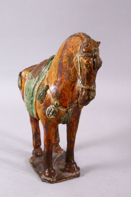 A CHINESE MING SANCAI GLAZED POTTERY HORSE, 24cm