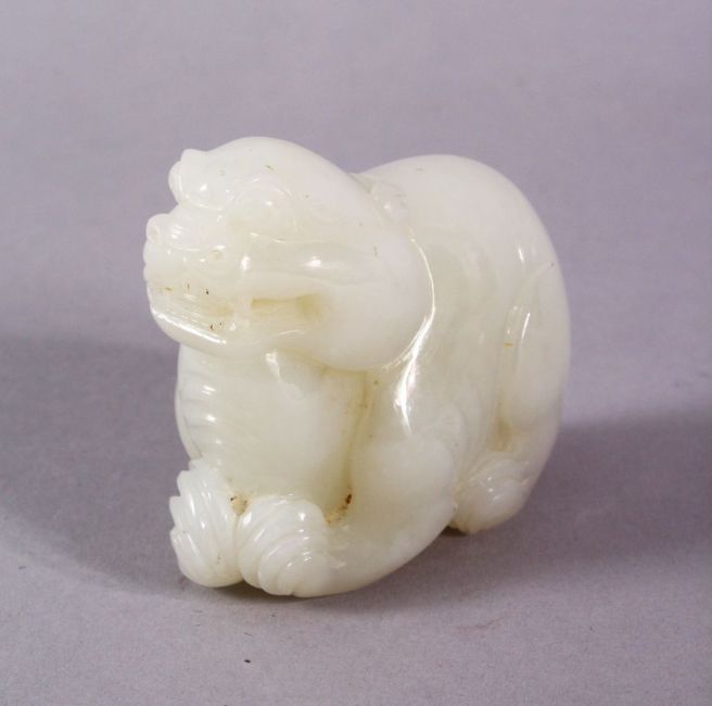 A WHITE JADE FIGURE OF A BEAST, 5cm long.