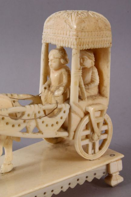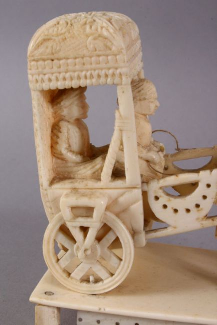 A 19TH CENTURY INDIAN CARVED IVORY CONVEYANCE, 11cm long.