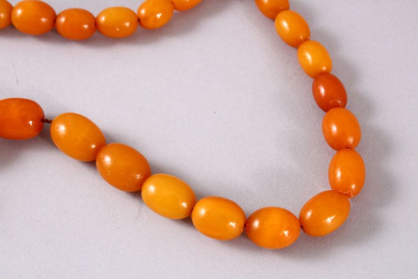 A SET OF AMBER BEADS, comprising of 31 beads.