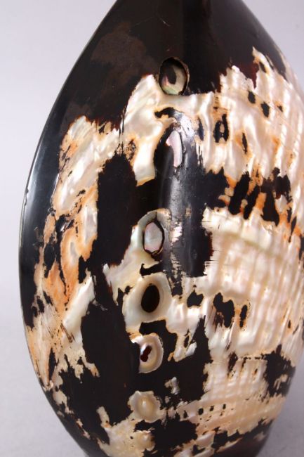 A CHINESE LACQUER & SHELL INLAID BOTTLE / VASE, 18cm high.