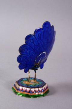 TWO 19TH / 20TH CENTURY INDIAN ENAMEL BIRD FIGURES, one of a peacock, the other of a bird upon perch, 9cm & 8cm.