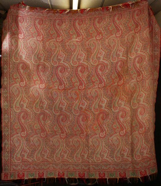 A LARGE INDIAN PAISLEY DESIGN TEXTILE, With tassel.