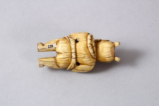 A GOOD EARLY CHINESE CARVED IVORY FIGURE OF A SEMI NUDE MAN - the figure stood in traditional robes with articulated genitalia, 5cm