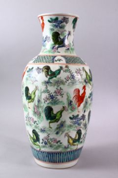 A CHINESE VASE painted with chickens, six character mark to base, 43cm high.