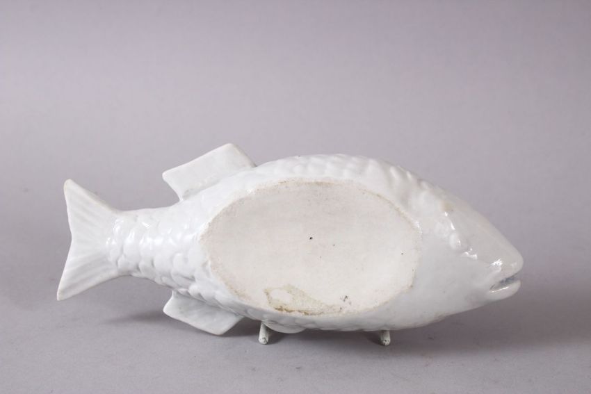 A JAPANESE MONOCHROME PORCELAIN FISH FORMED BOX & COVER, 17cm