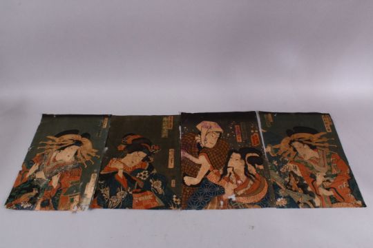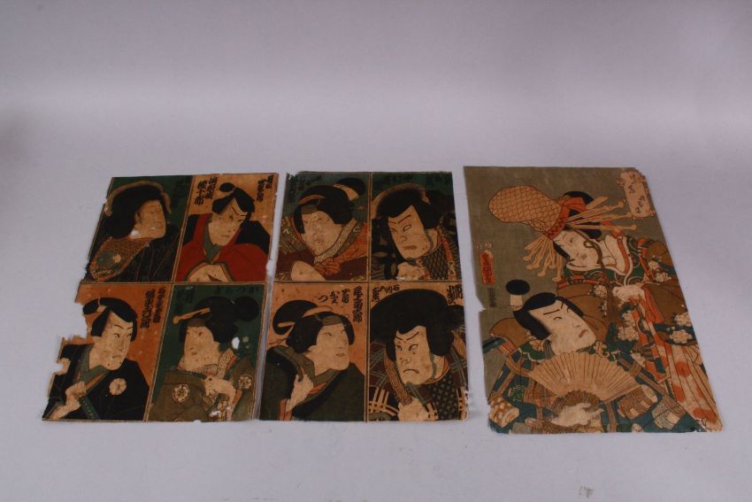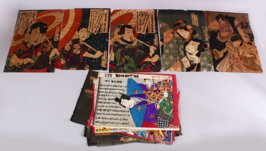 A COLLECTION OF 20 JAPANESE MEIJI PERIOD WOODBLOCK PRINTS - TOYOKUNI III - KUNICHIKA - KACHORO, one of a figure upon horseback, the others mostly kabuki theatre play / actors, (20)