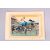 A JAPANESE WOODBLOCK PRINT - FIGURES AND HORSE - the figures stood in a windswept landscape with a horse, signed and sealed, mounted, 22cm x 16.4cm ( print alone )