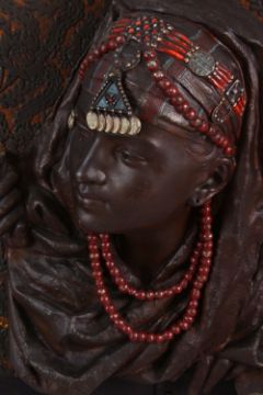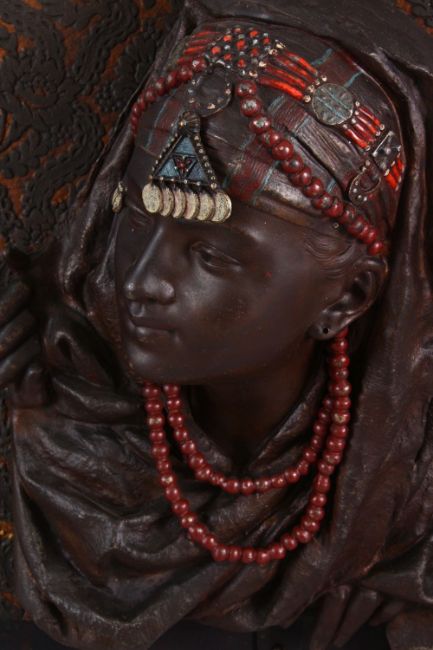 A PAIR OF EGYPTIAN BRONZE RELIEF FIGURAL BUSTS, depicting a prince & princess,each mounted to a wooden plaque, 56cm x 40cm