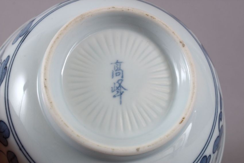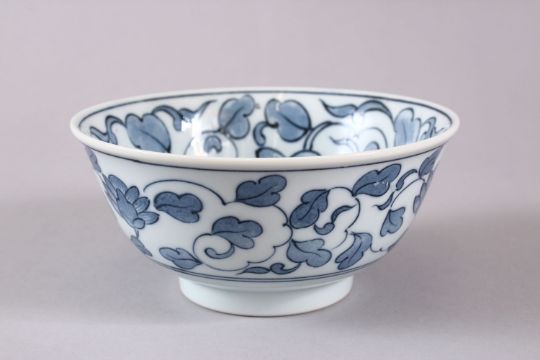 A 20TH CENTURY JAPANESE BLUE AND WHITE BOWL, with floral decoration, 15cm diameter.