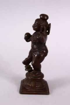 A FINE 17TH/18TH CENTURY INDIAN BRONZE FIGURE of baby Krishna, 11cm high.