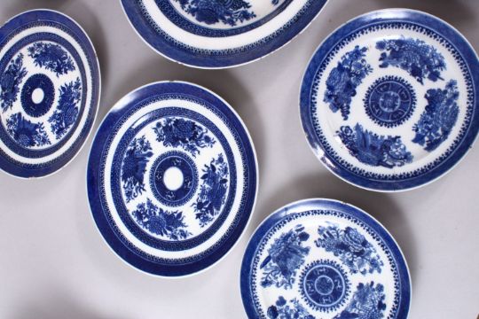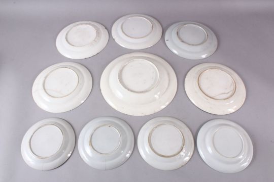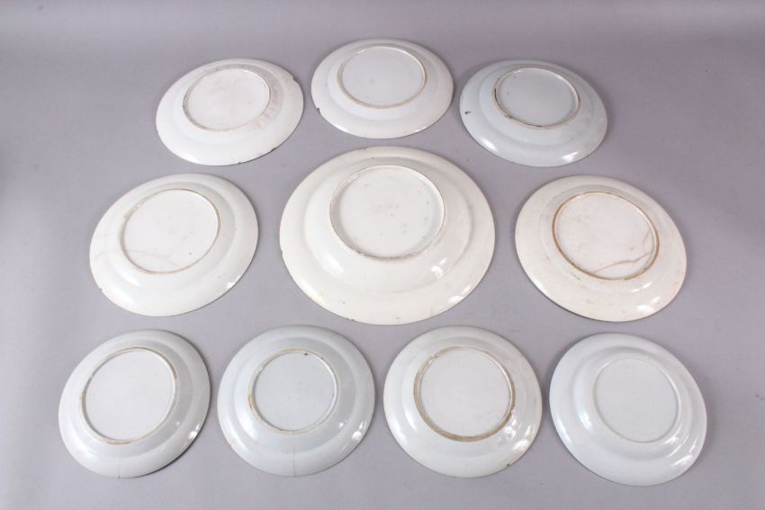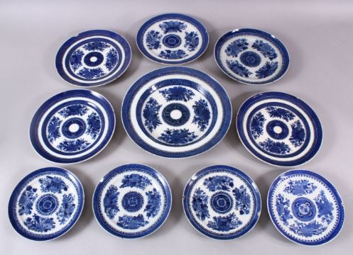 A LOT OF TEN CHINESE 19TH CENTURY BLUE & WHITE PORCELAIN DISHES, each with floral and precious object decoration, 15.5cm up to25.5cm.