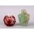 A GOOD CHINESE PEKING GLASS OVERLAID SNUFF BOTTLE & OTHER, the stuff bottle overlaid with scenes of bats, peach trees and figures in landscapes, 6cm, together with a green crystal / hard stone prunus carved bottle, 7cm (2)