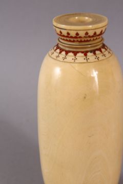 A FINE 18TH CENTURY SRI LANKAN POLYCHROME DECORATED IVORY BOTTLE, 16.5cm high.