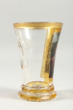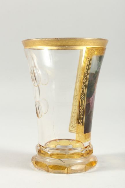 A SUPERB VIENNA GLASS BEAKER painted with a panel of two children.