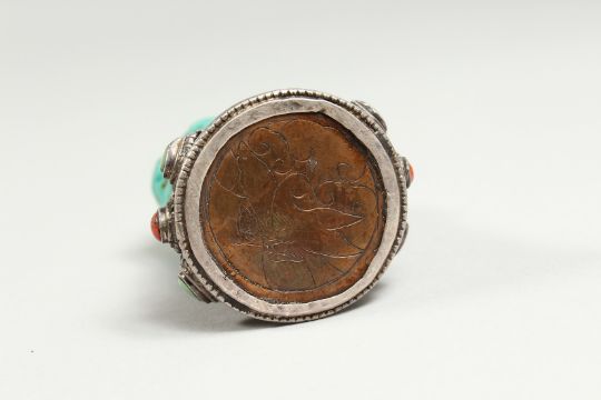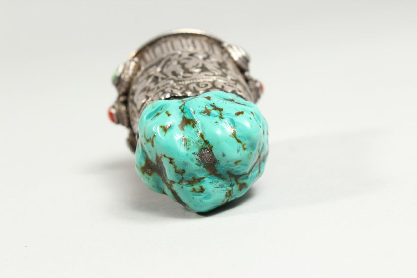A RARE TIBETAN SILVER AND TURQUOISE SEAL