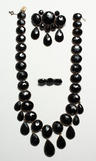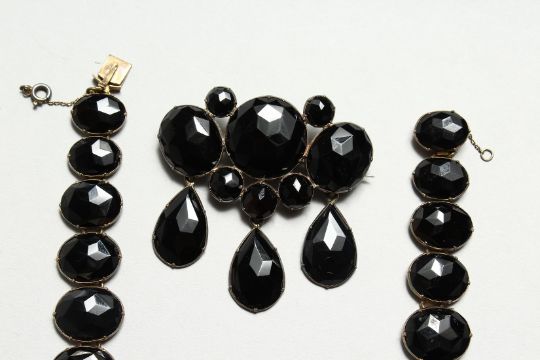 A CONTINENTAL FACET CUT NECKLACE, BROOCH AND EAR RINGS in original case, JULIUS WENNERSTROM, SODERTALIB.