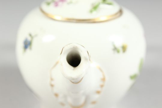 A LOVELY VIENNA BULLET SHAPED TEA POT AND COVER, with flower knop handles and painted with flowers.