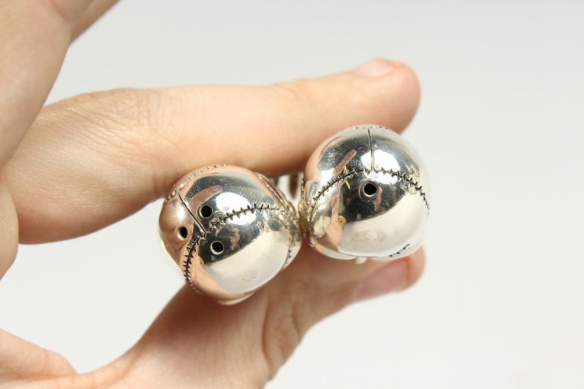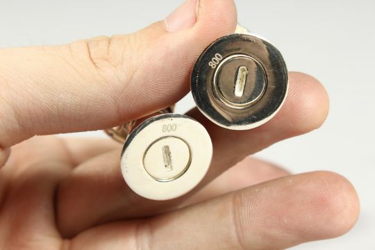 A PAIR OF .800 SKULL SALT AND PEPPERS