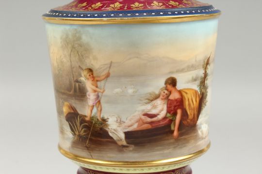 A GOOD LARGE VIENNA PORCELAIN EWER painted with a classical scene, lovers in a boat, by A. GRAYON.