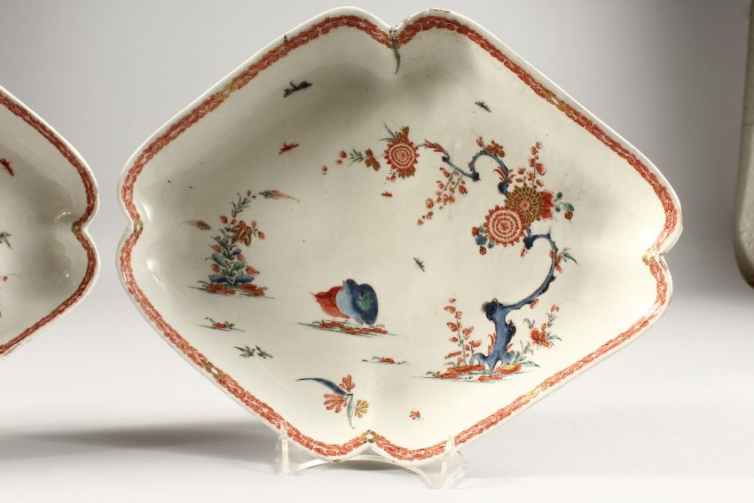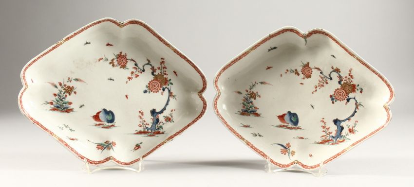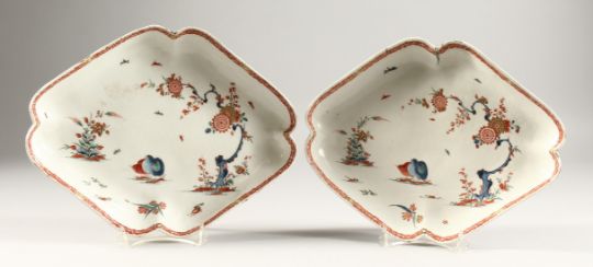 A PAIR OF BOW KAKIEMON LOZENGE SHAPED DISHES.