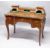 A GOOD LOUIS XVI STYLE KINGWOOD AND PARQUETRY INLAID WRITING DESK, the top with brass grilll, two small grawers and pigeon ole filled with a green leather shaped writing surface, a central ctcus flanked by deep drawers with ormolu mounts on cabriole legs
