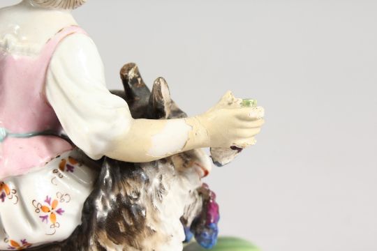 A 19TH CENTURY MEISSEN STYLE PORCELAIN GROUP OF A BOY AND GIRL holding grapes, with a goat.