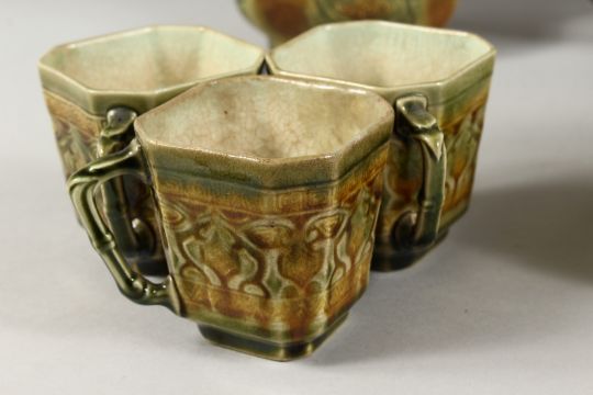 A 1920's-30's FRENCH PORCELAIN TEA SET, comprising six cups and saucers, coffee pot, sugar basin and milk jug.
