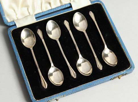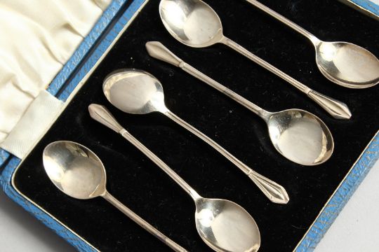 A SET OF SIX STERLING SILVER COFFEE SPOONS cased