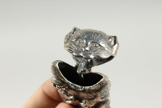 A CAST SILVER JAPANESE CAT WITH A RAT VESTA CASE