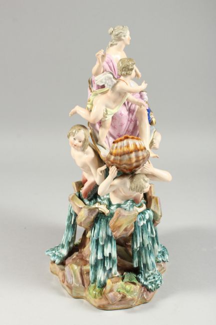 A GOOD LARGE MEISSEN PORCELAIN GROUP depicting Amphitrite and attendants.