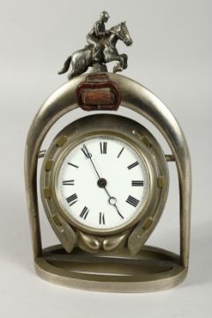 A GOOD EQUESTRIAN CLOCK ON A HORSE SHOE in a stirrup.