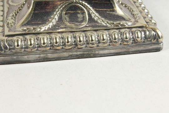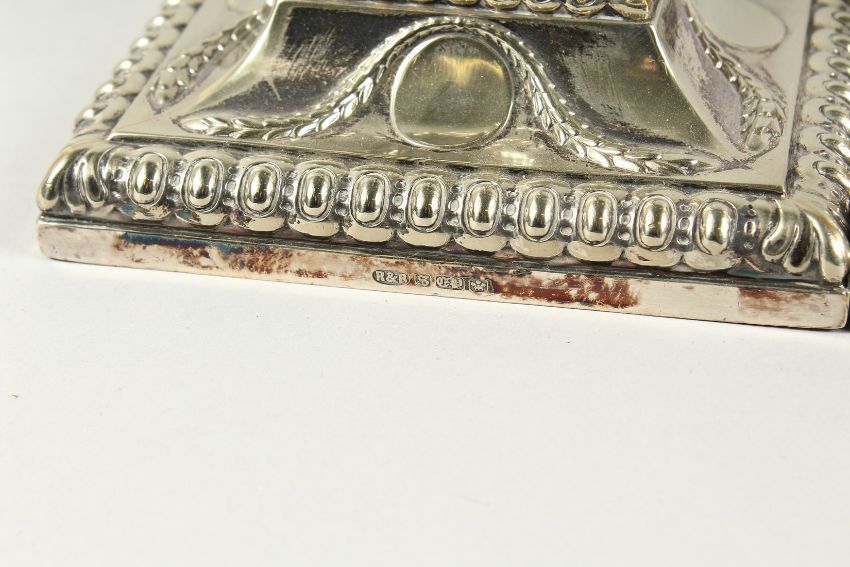 A SET OF FOUR CLUSTER COLUMN OF CLASSIC DESIGN on square loaded bases.
