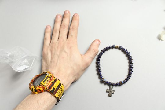 A ROMAN BEAD BRACELET with crucifix pendant.