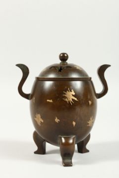 A CHINESE GOLD SPLASH TWO HANDLED CENSER AND COVER.