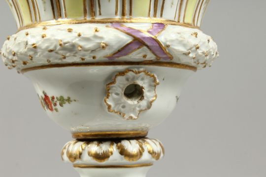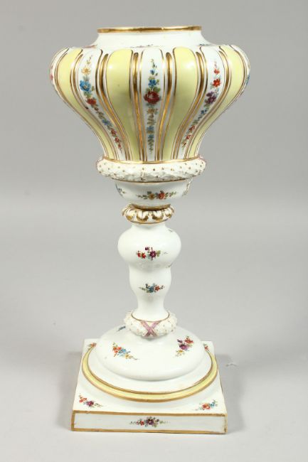 A MEISSEN PORCELAIN LAMP BASE painted and sprigged with flowers on a square base.