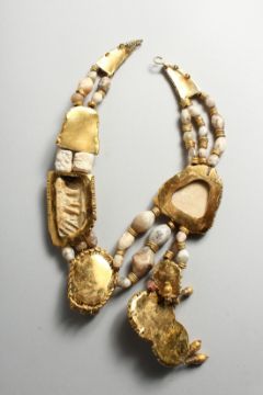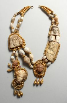 A ROAMN STONE HEAD AND PEBBLE AND SILVER NECKLACE