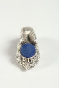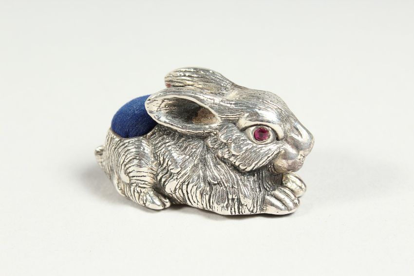 A LARGE SILVER RABBIT PIN CUSHION