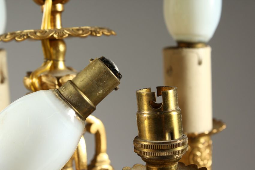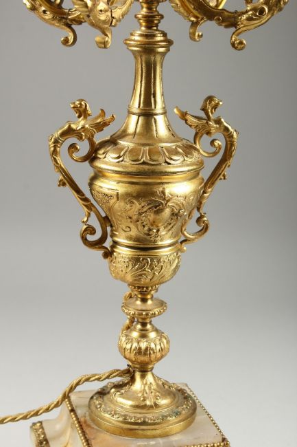 A 19TH CENTURY ONYX AND GILT METAL FIVE LIGHT CANDLELABRA on a square stepped base.