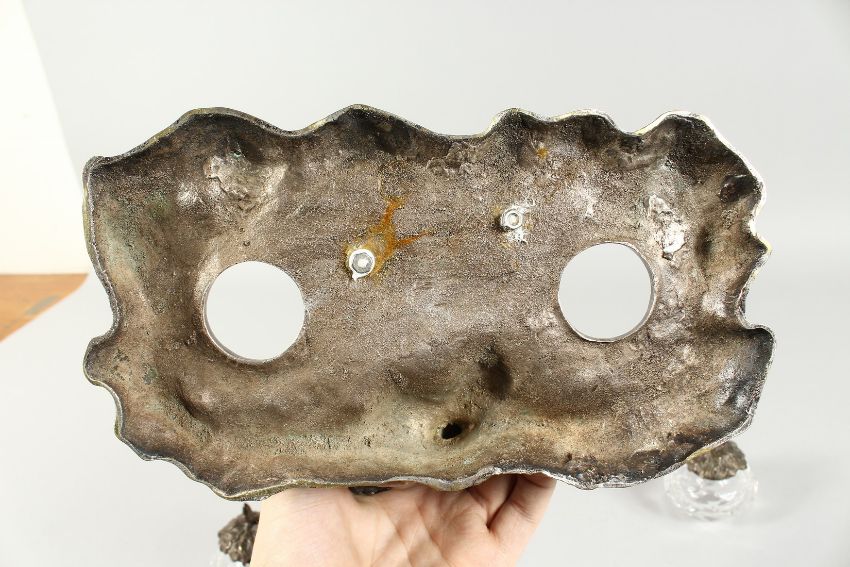 A GOOD BRONZE INKWELL, girl with a horse in a rustic setting.