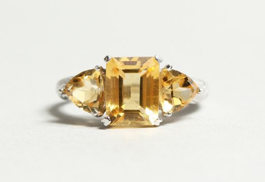 A SILVER AND CITRINE RING