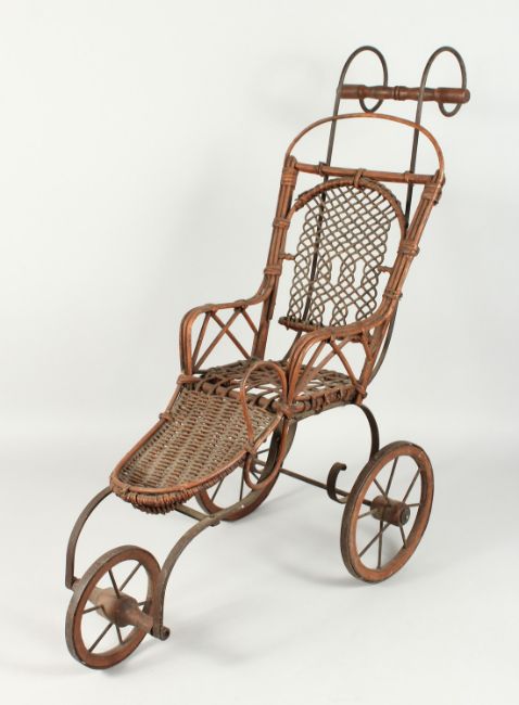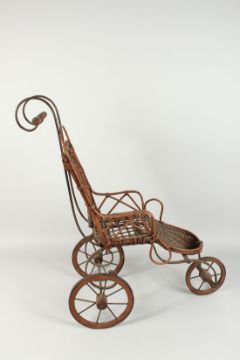 A CHILD'S VICTORIAN CANE DOLL'S PRAM