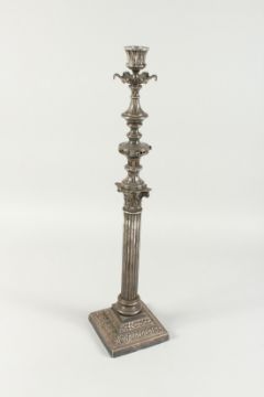 A LARGE VICTORIAN CORINTHIAN COLUMN LAMP on a square base.